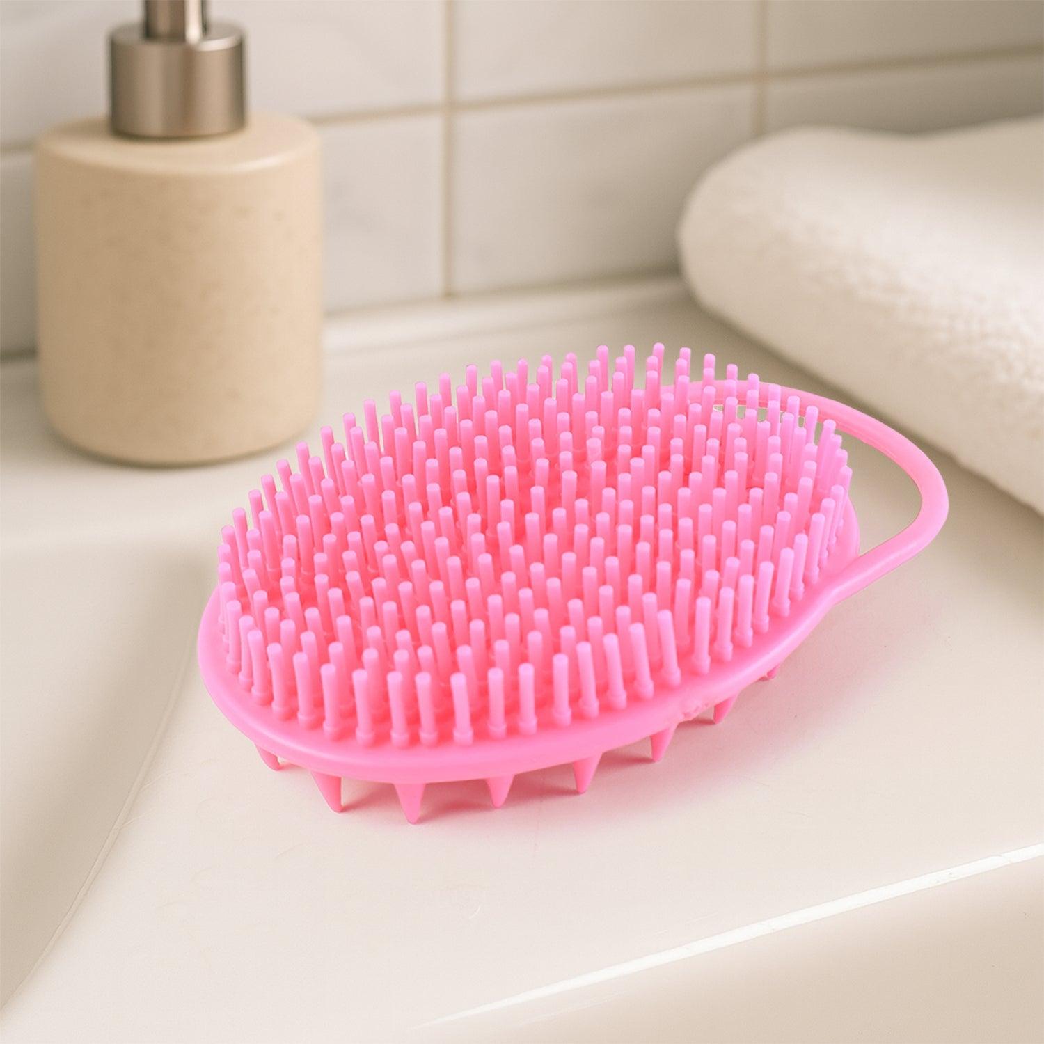 body scrubber, silicone bath brush, exfoliating brush, skin massage brush, body cleansing tool, body washer brush, scrubber for bath,bathroom accessories, spa essentials, shower massage tool, skin care brush,women’s body scrubber,pink bath brush