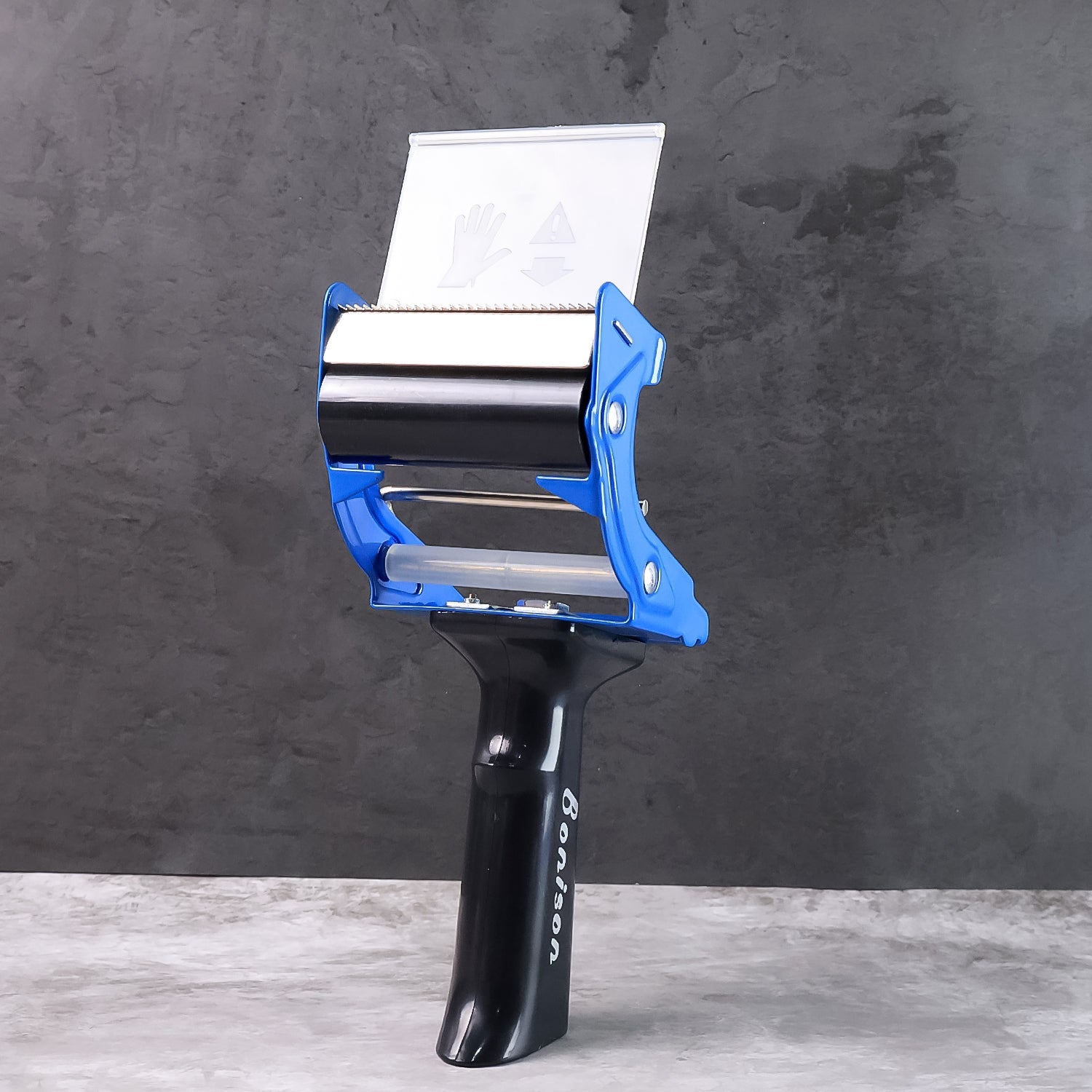 tape dispenser, packing tape tool, sealing tape dispenser, carton sealing machine,parcel packing tool,manual tape cutter, box sealing equipment,warehouse packing tool,handheld tape dispenser,plastic and metal tape tool, blue and black tape applicator